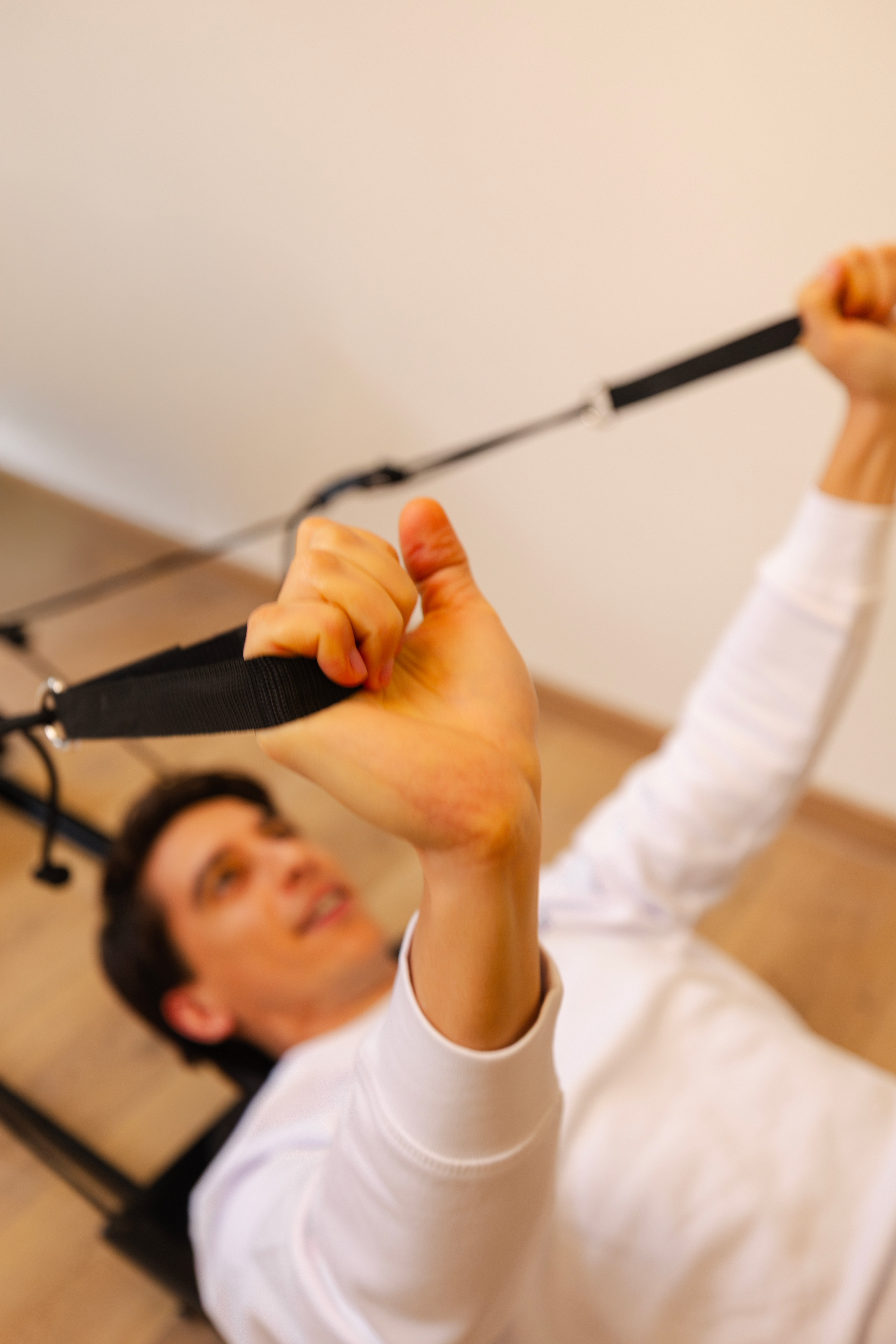 Allenamento completo su macchina, per potenziare, allungare e migliorare postura e controllo del corpo.